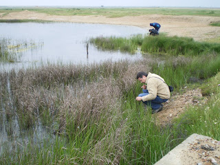 Bueno, pues lo de la cartera tiene su miga. Resulta que nos dió por parar a ver una charca que estaba pegada a la autopista, cogimos la salida correspondiente y como no había lugar donde parar, nos bajamos Jose Ramon y yo, mientras el resto quedaba bastante atravesados en la carretera, pero bueno son solo 5 minutos....